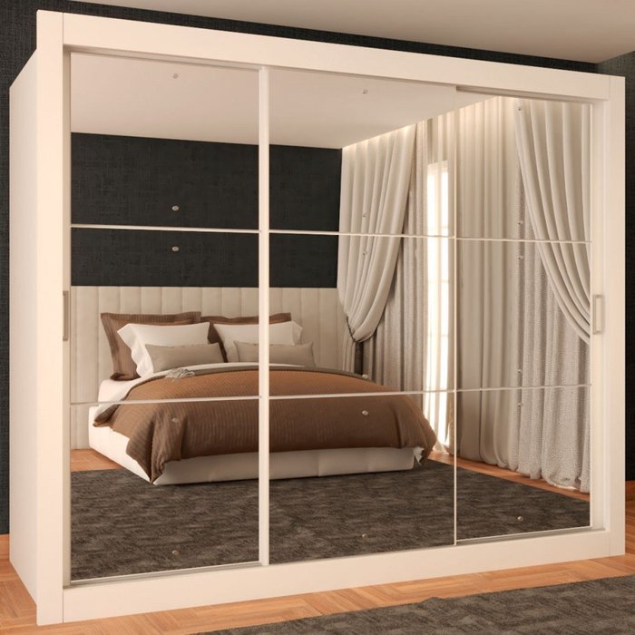 Guarda-roupa Casal Colorado 3 Portas 3 Gavetas com Espelho Branco - Panorama Móveis