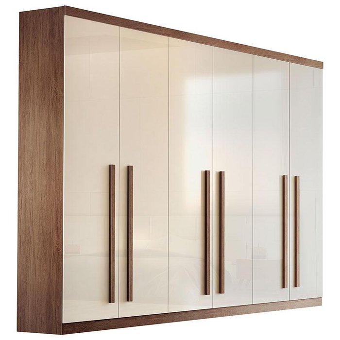 Guarda-Roupa Casal Com 6 Portas e 6 Gavetas Barreto -Rufato. - Café / Off white / Café