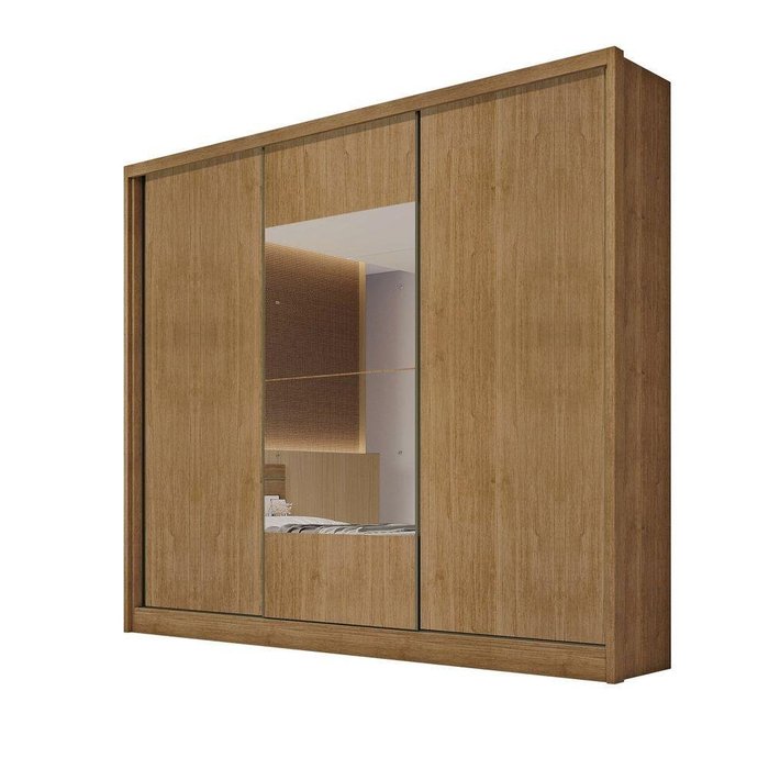 Guarda Roupa Casal Com Espelho, 03 Portas De Correr E 08 Gavetas Arezzo Plus Novo Horizonte Cor Cumaru Novo Horizonte