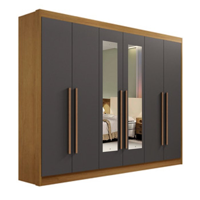 Guarda Roupa Casal com Espelho ,06 portas e 06 Gavetas New Athos D'Doro Móveis - CINAMOMO GRAFITE D'
