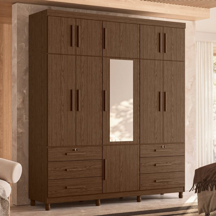 Guarda-roupa Casal com Espelho 11 Portas 6 Gavetas Triton Plus Cacau