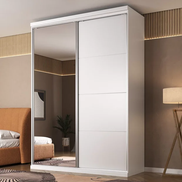Guarda Roupa Casal com Espelho 2 Portas 3 Gavetas Sevilha Branco