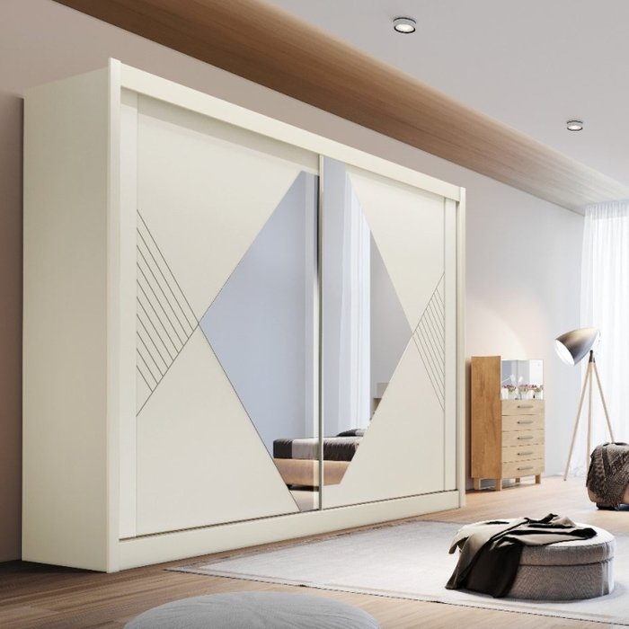 Guarda Roupa Casal com Espelho 2 Portas 4 Gavetas Santorini Móveis Europa Off White