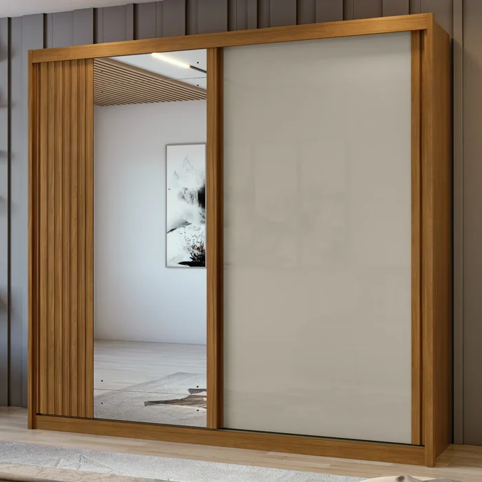 Guarda Roupa Casal com Espelho 2 Portas 4 Gavetas Velaris Móveis Lopas Rovere Naturale/Off White/Rovere Naturale