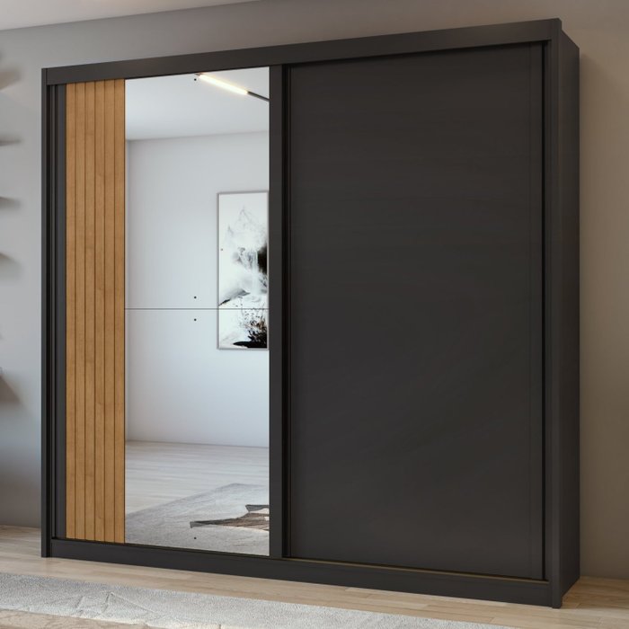 Guarda Roupa Casal com Espelho 2 Portas 4 Gavetas Velaris Móveis Lopas Preto Fosco/Amêndoa Clean