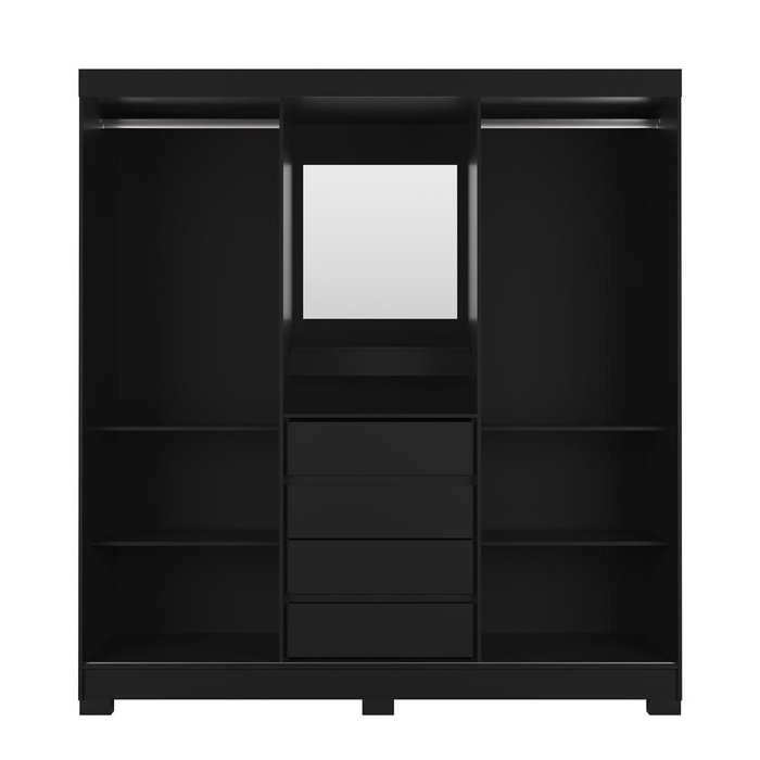 Guarda-roupa Casal com Espelho 2 Portas de Correr 4 Gavetas Finley 184 Cm - Preto