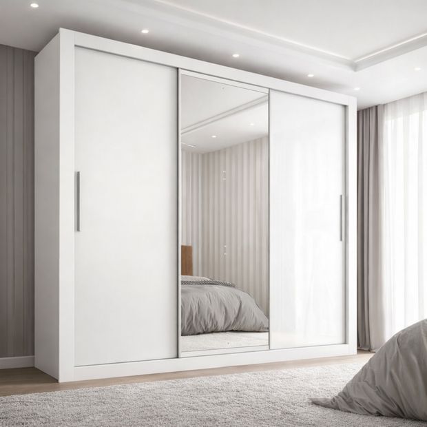 Guarda-Roupa Casal com Espelho 3 Portas 4 Gavetas 185,5cm Viena Yescasa Branco