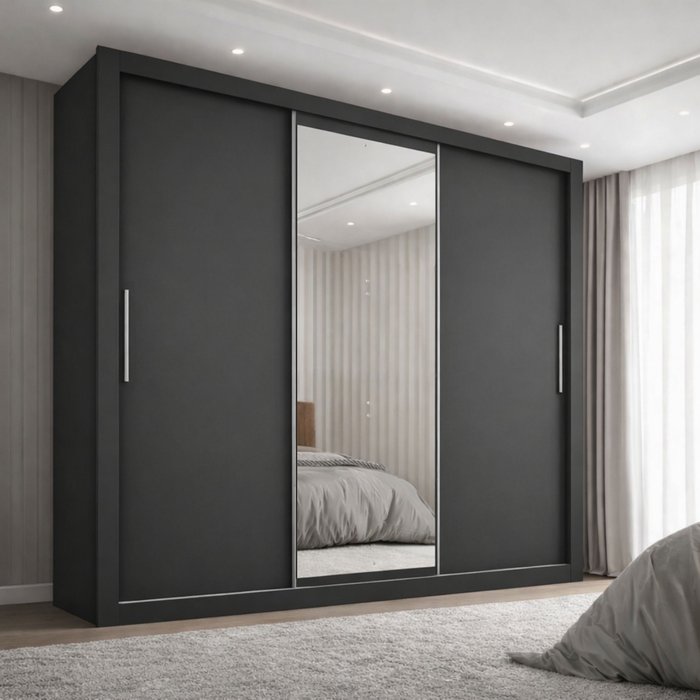 Guarda-Roupa Casal com Espelho 3 Portas 4 Gavetas 185,5cm Viena Yescasa Preto