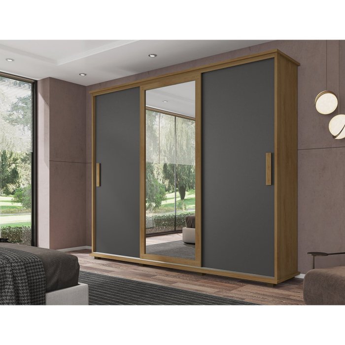 Guarda Roupa Casal com Espelho 3 Portas 4 Gavetas Espanha Cinamomo/Grafite