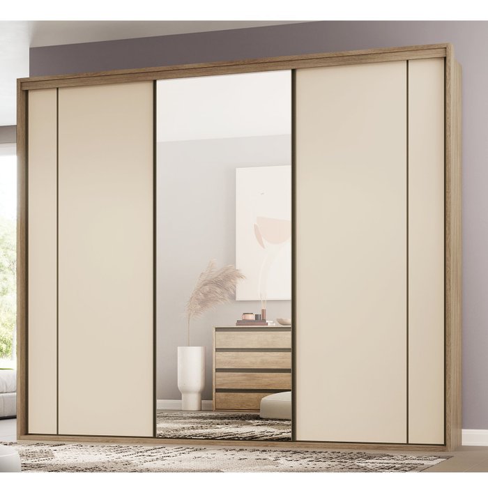 Guarda Roupa Casal com Espelho 3 Portas 4 Gavetas Lumier 2720 Belmax Carvalho/Off White