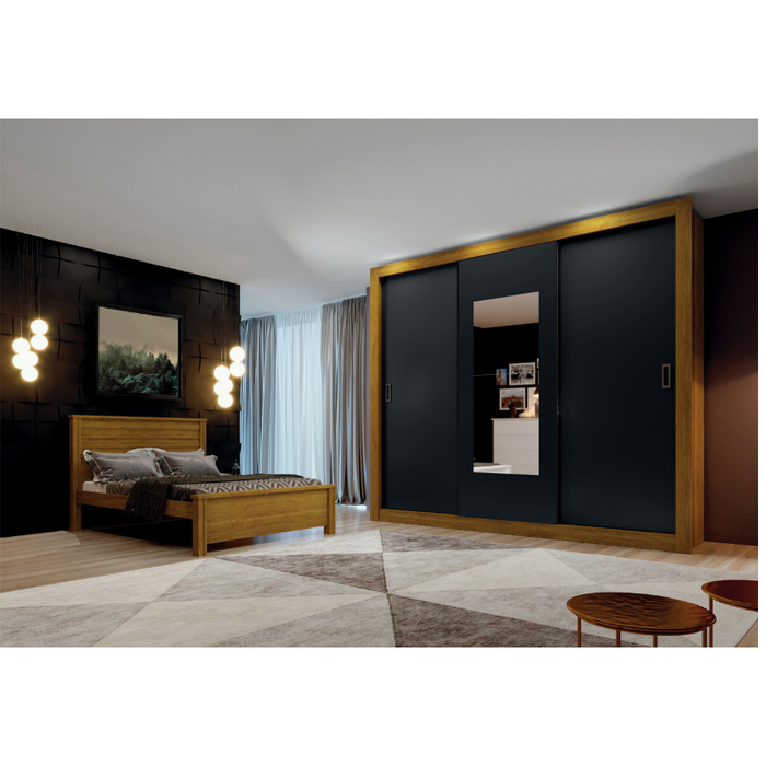 Guarda Roupa Casal com Espelho 3 Portas 4 Gavetas Manaus New Leifer Freijó/Preto