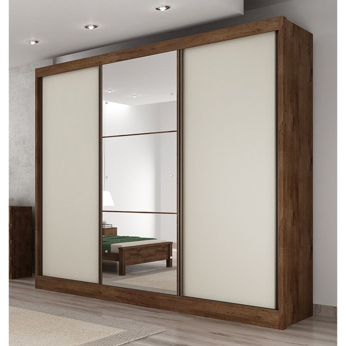 Guarda Roupa Casal com Espelho 3 Portas 4 Gavetas Toulon Novo Horizonte Cumaru/Off White