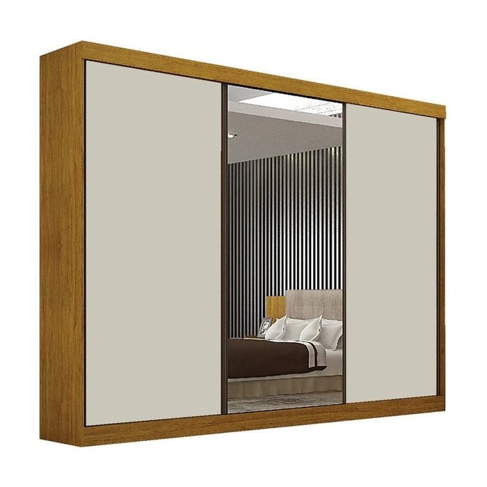 Guarda Roupa Casal com Espelho 3 Portas 6 Gavetas - São Paulo-Freijó/Off White - Leifer Móveis