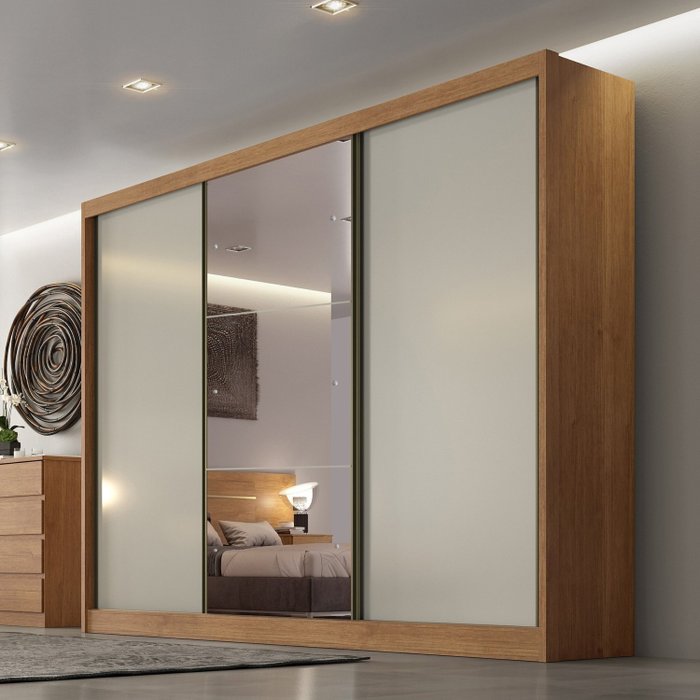 Guarda Roupa Casal com Espelho 3 Portas 6 Gavetas Wood Cumaru Fendi