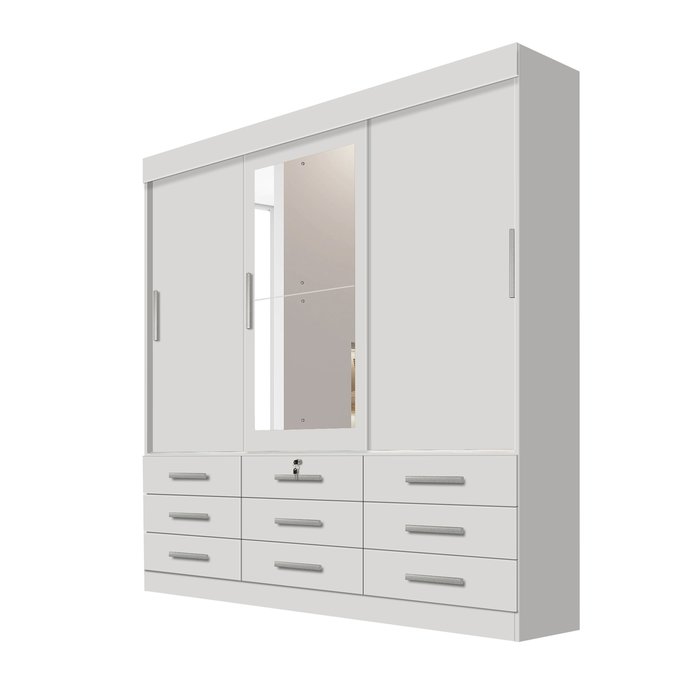 Guarda-Roupa Casal com Espelho 3 Portas 9 Gavetas Sonare - Branco