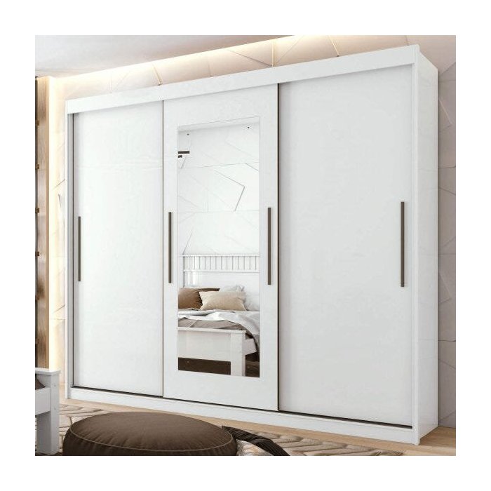 Guarda-Roupa Casal com Espelho 3 Portas Aquarius Branco