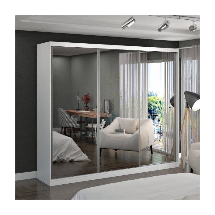 Guarda-Roupa Casal com Espelho 3 Portas de Correr 2 Gavetas MDFmm7318E3 Espresso Móveis Branco