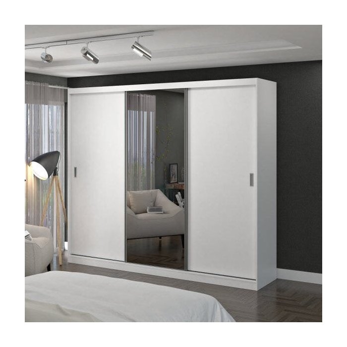 Guarda-Roupa Casal com Espelho 3 Portas de Correr 4 Gavetas 1905E1 Branco
