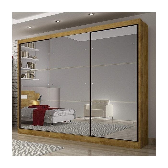 Guarda-Roupa Casal com Espelho 3 Portas de Correr 8 Gavetas Grand Espresso Móveis Freijó Dourado