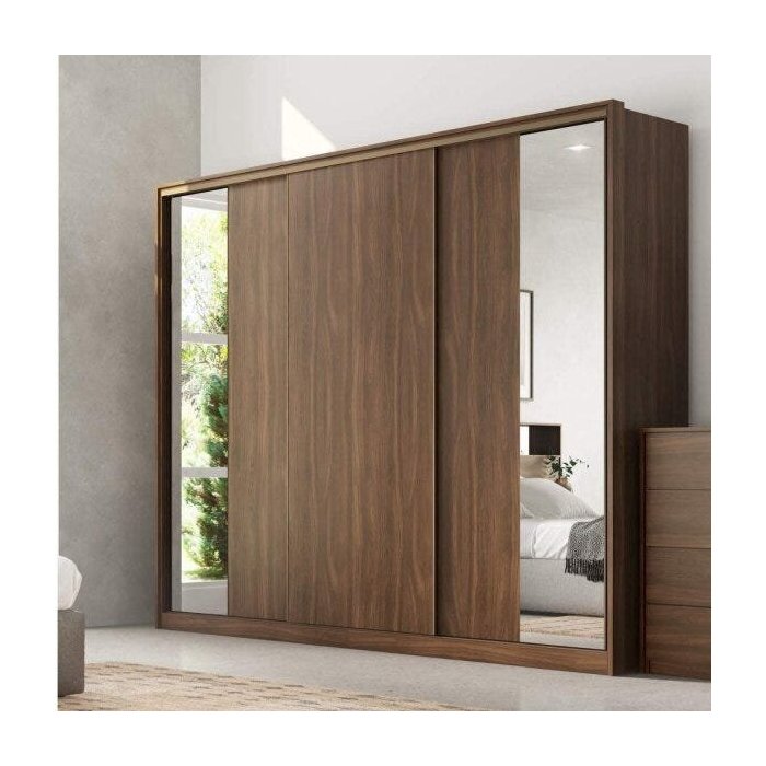 Guarda-Roupa Casal com Espelho 3 Portas de Correr e 5 Gavetas Elevato Demóbile Âmbar