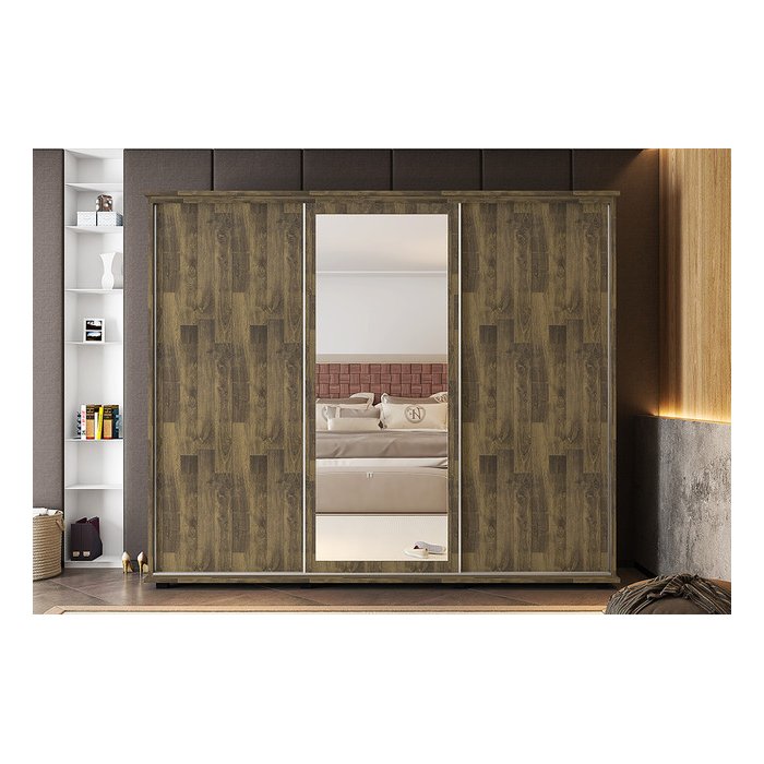 Guarda-Roupa Casal com Espelho 3 Portas de Correr Espanha Amadeirado