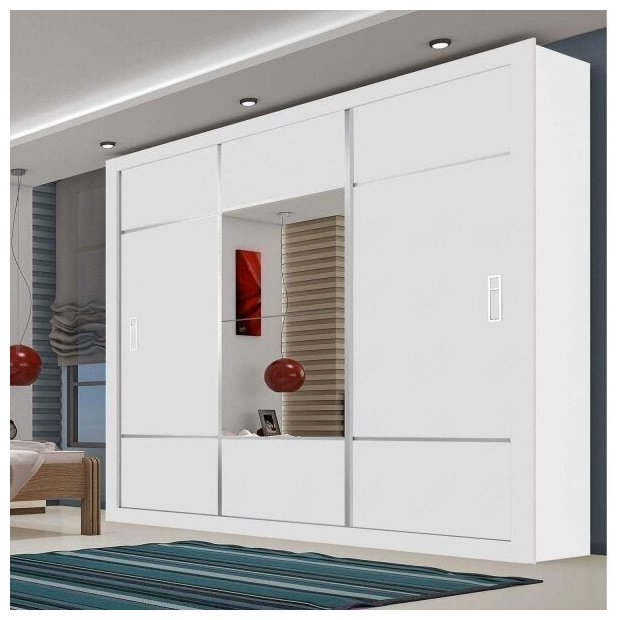 Guarda-Roupa Casal com Espelho 3 Portas de Correr Lotse Espresso Móveis Branco