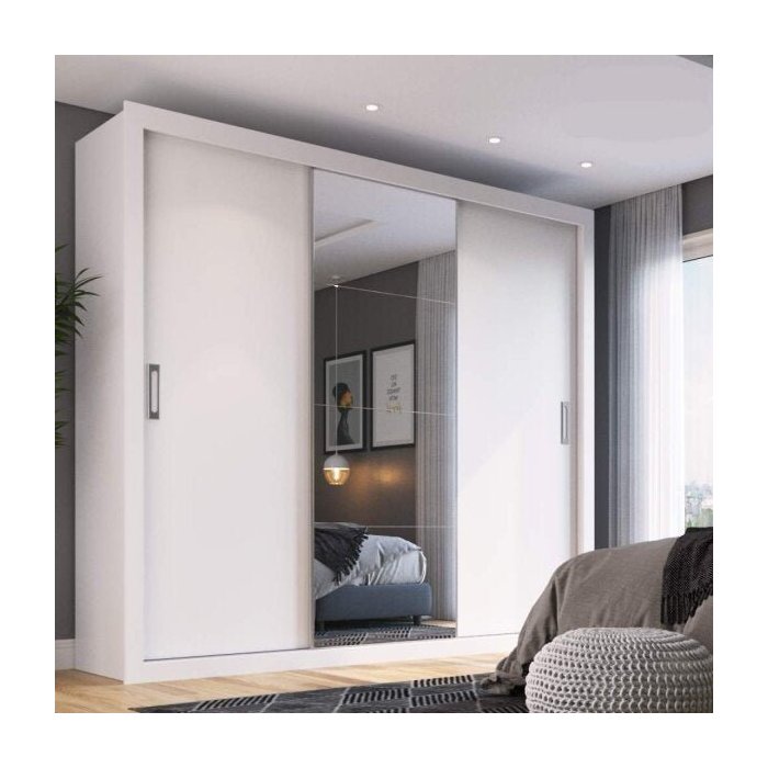 Guarda-Roupa Casal com Espelho 3 Portas Fantástico Gold Espresso Móveis Branco