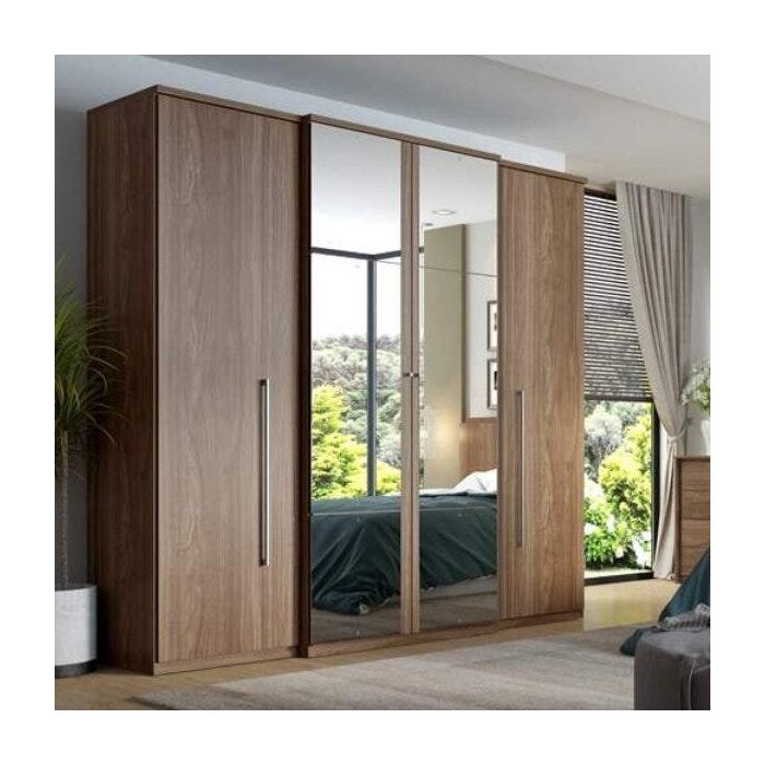 Guarda-Roupa Casal com Espelho 4 Portas 2 Gavetas Splendore Plus Glass