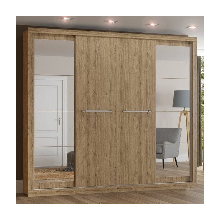 Guarda-Roupa Casal com Espelho 4 Portas de Correr Elegance Henn Rústico