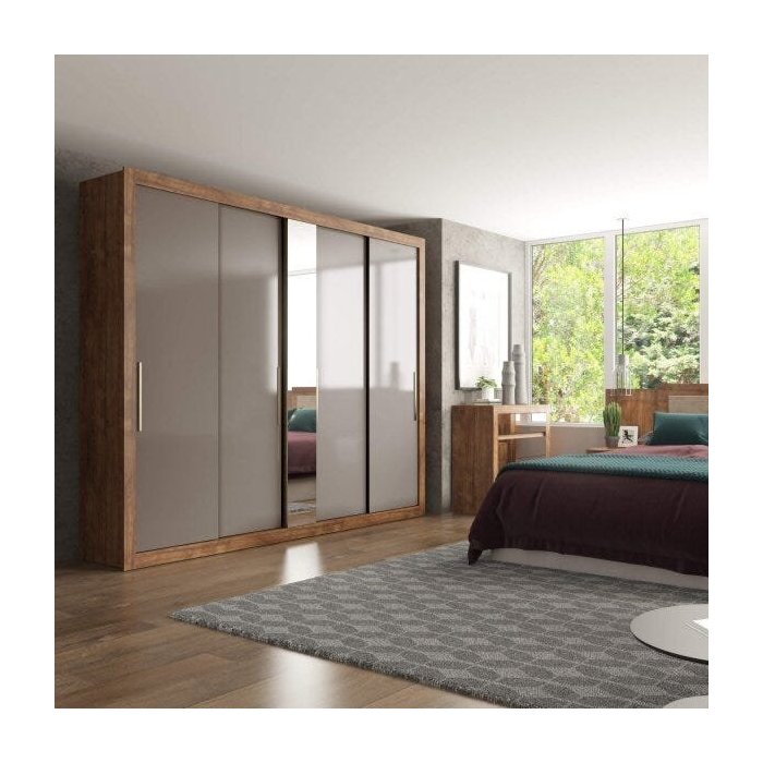 Guarda-Roupa Casal com Espelho 5 Portas de Correr Baco 1073 Carraro Flex Color