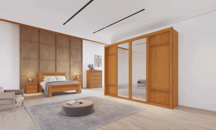 Geralmente, este tipo de guarda-roupa apresenta 2 ou 3 portas e tem menos divisões no espaço interno.