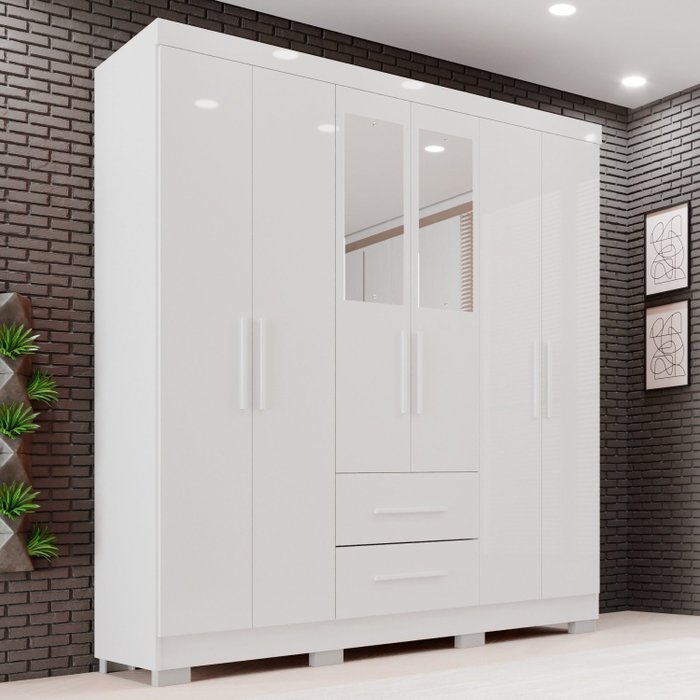 Guarda-roupa Casal com Espelho 6 Portas 2 Gavetas Estrela Premium Branco