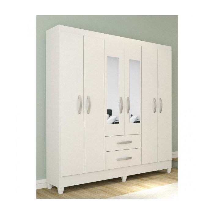 Guarda-roupa Casal com Espelho 6 Portas 2 Gavetas Real Light Atualle Móveis Branco Brilho