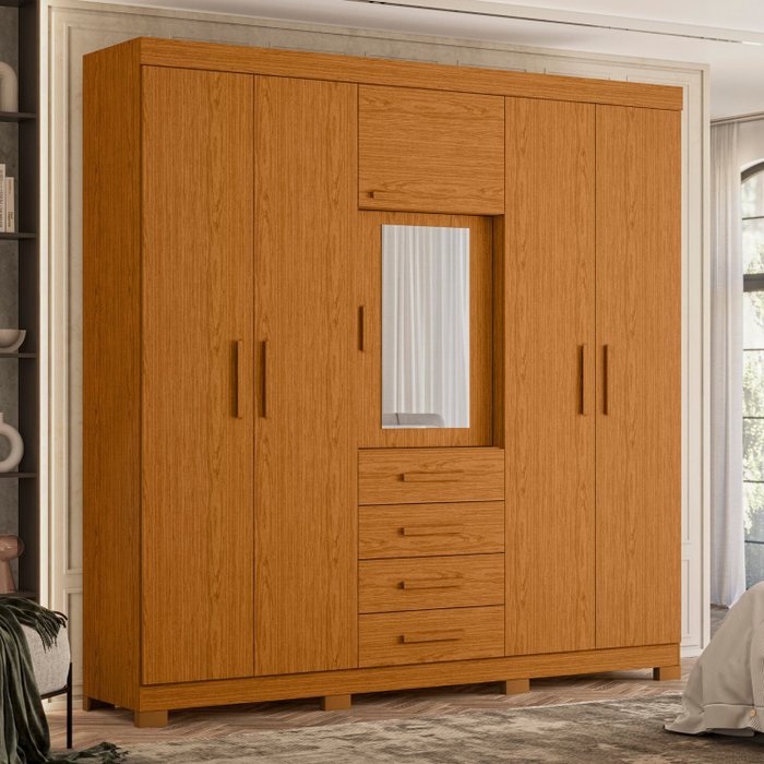Guarda Roupa Casal com Espelho 6 Portas 4 Gavetas Virtus Cinamomo