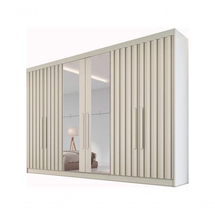 Guarda-roupa Casal Com Espelho 6 Portas 6 Gavetas Móveis Europa Ripado Potente Off White
