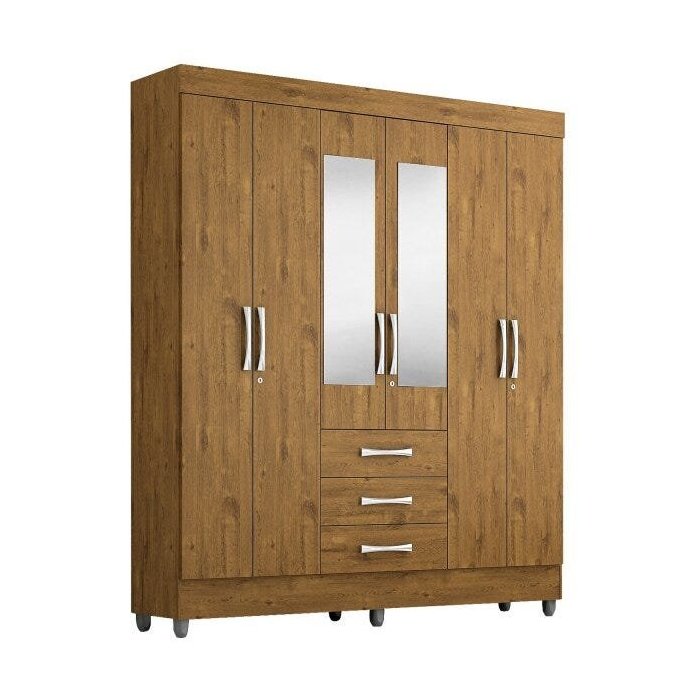 Guarda-Roupa Casal com Espelho 6 Portas Beatriz Acp Móveis Mel