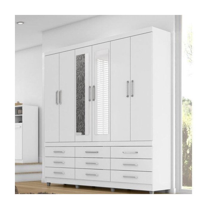 Guarda-Roupa Casal com Espelho 6 Portas Canadá Demóbile Branco