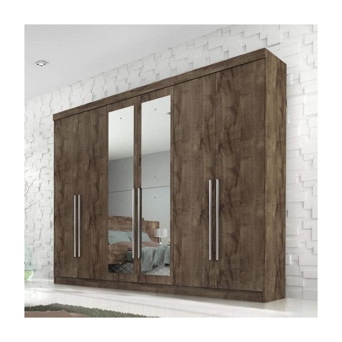 Guarda-Roupa Casal com Espelho 6 Portas Leblon Panan Móveis Café