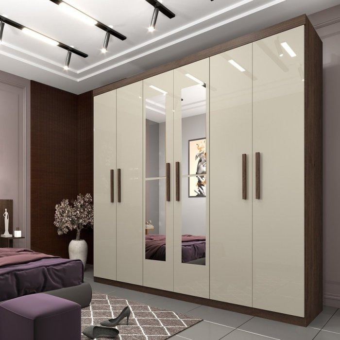 Guarda Roupa Casal Com Espelho 6 Portas Olimpo Flex Montagem Tcil Móveis