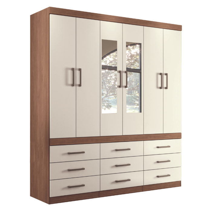 Guarda Roupa Casal com Espelho 6 Portas Toluca Jatobá Areia