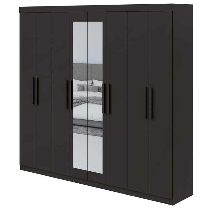 Guarda Roupa Casal com Espelho 8 Portas 4 Gavetas Andara Lopas Preto