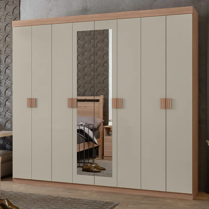 Guarda Roupa Casal com Espelho 8 Portas 4 Gavetas Duna Móveis Lopas