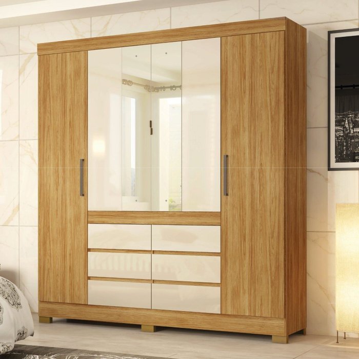 Guarda-roupa Casal com Espelho Cadis Cinamon/Off-White