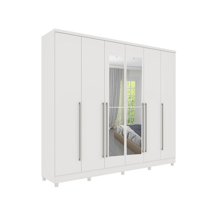 Guarda Roupa Casal Com Espelho e Pés 6 Portas 8 gavetas Sevilla Tcil Móveis Sevilla com espelho e pé Branco Neve