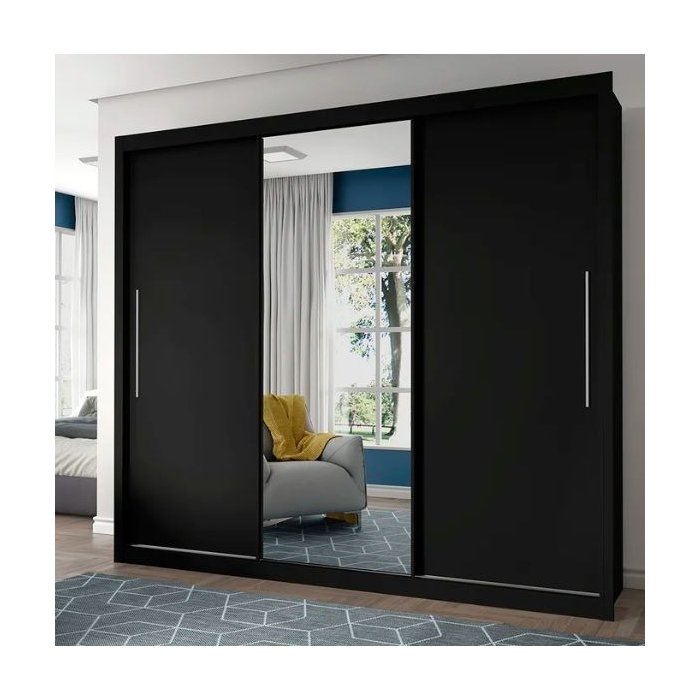 O Roupeiro Royale se destaca pela praticidade das três portas de correr, que contribuem para a otimização de espaço, contando com um amplo espaço interno, onde sua estrutura é formada por quatro gavetas, 4 prateleiras e espaço para vestidos e calças.
