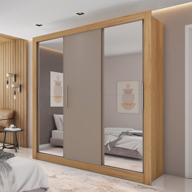 Guarda-Roupas Quito produzido em MDP com portas de correr 2 Portas com Espelhos 4 gavetas é o item necessário e fundamental para manter a organização do seu quarto e todas as suas roupas em ordem. A Espresso Moveis conta com produtos sofisticados e e práticos, vai deixar seu quarto mais bonito ainda, ele é de casal, as três portas de correr proporcionam economia de espaço no quarto, juntamente com as duas gavetas internas para facilitar o manuseio. Guarda Roupa Quito oferece requinte e beleza ao ambiente contam com prateleiras que oferecem organização às roupas e aos pequenos objetos do casal.As roldanas em aço e o trilho em alumínio tem a função de potencializar o deslizar das portas e cabideiros em alumínio.