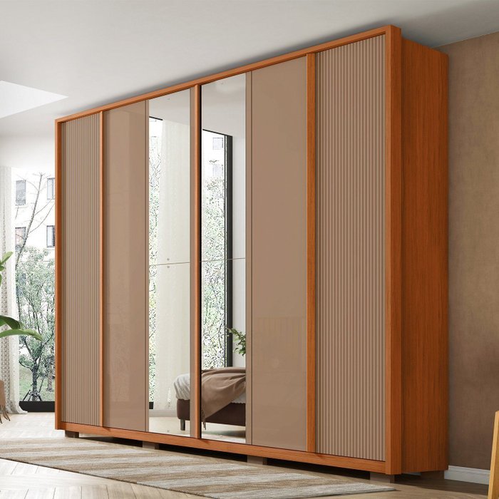 Guarda Roupa Casal com Espelhos Microripado 6 Portas 4 Gavetas Cleo Freijó