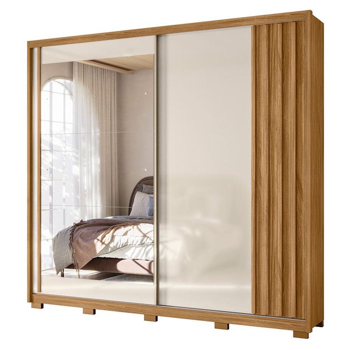Guarda Roupa Casal Dhara 2 Portas Deslizantes Freijó/off White com Espelho - Moval