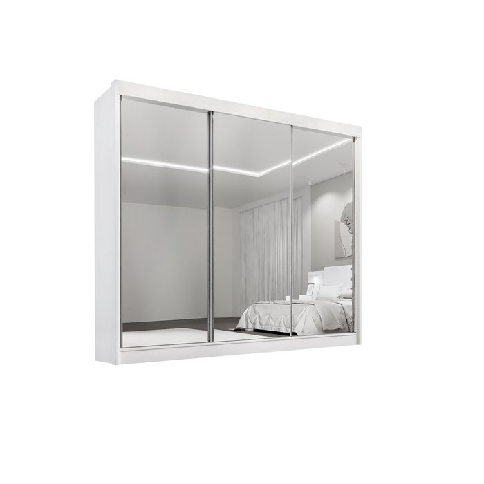 Guarda Roupa Casal Dubai 3 Portas Espelhadas 6 Gavetas 100% Mdf D Doro Móveis- Branco