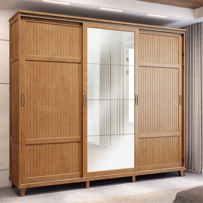 Guarda-roupa Casal Dublin 3 Portas De Correr Em Madeira Com Espelho Freijó - Cavazotto